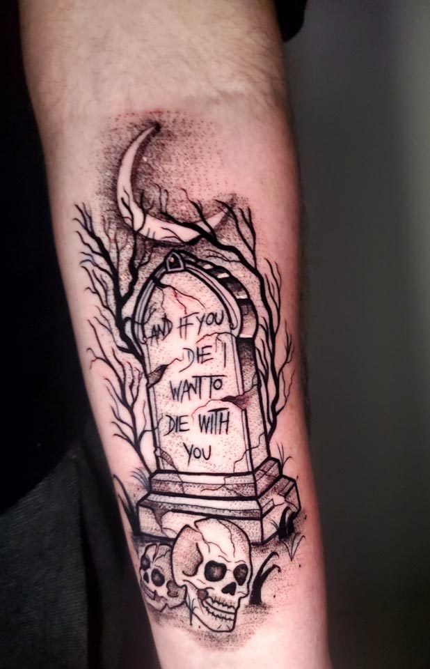 Arianna_Elise_1739814294_sketchy, black and grey, linework, lettering and script, skull, halloween, .jpg