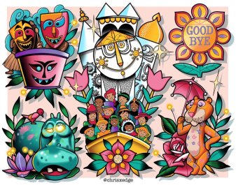 Sailor Jerry knew that life was too short for indecision. So, he created Flash—the instant gratification of ink. It’s like ordering a shot of adrenaline with a side of art. Back when tattooing was frowned upon, artists would set up shop in hidden areas (like the back of a bar). They’d display Flash designs on cardboard, allowing them to quickly tattoo several clients in one night. If the authorities showed up, the artists would pack up their designs and vanish “in a flash.” The term “flash” stuck, and it became synonymous with boldness, spontaneity, and a dash of rebellion.