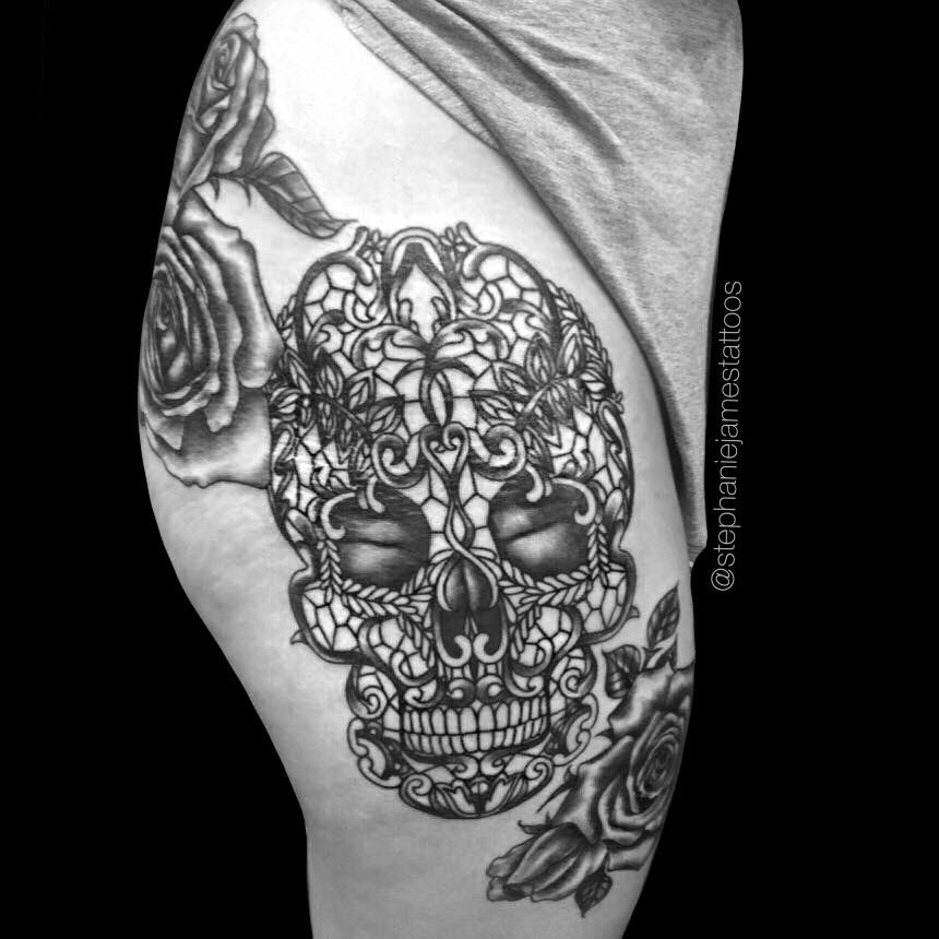 STEPHANIE blackwork - Skull - roses - black and grey - .JPG