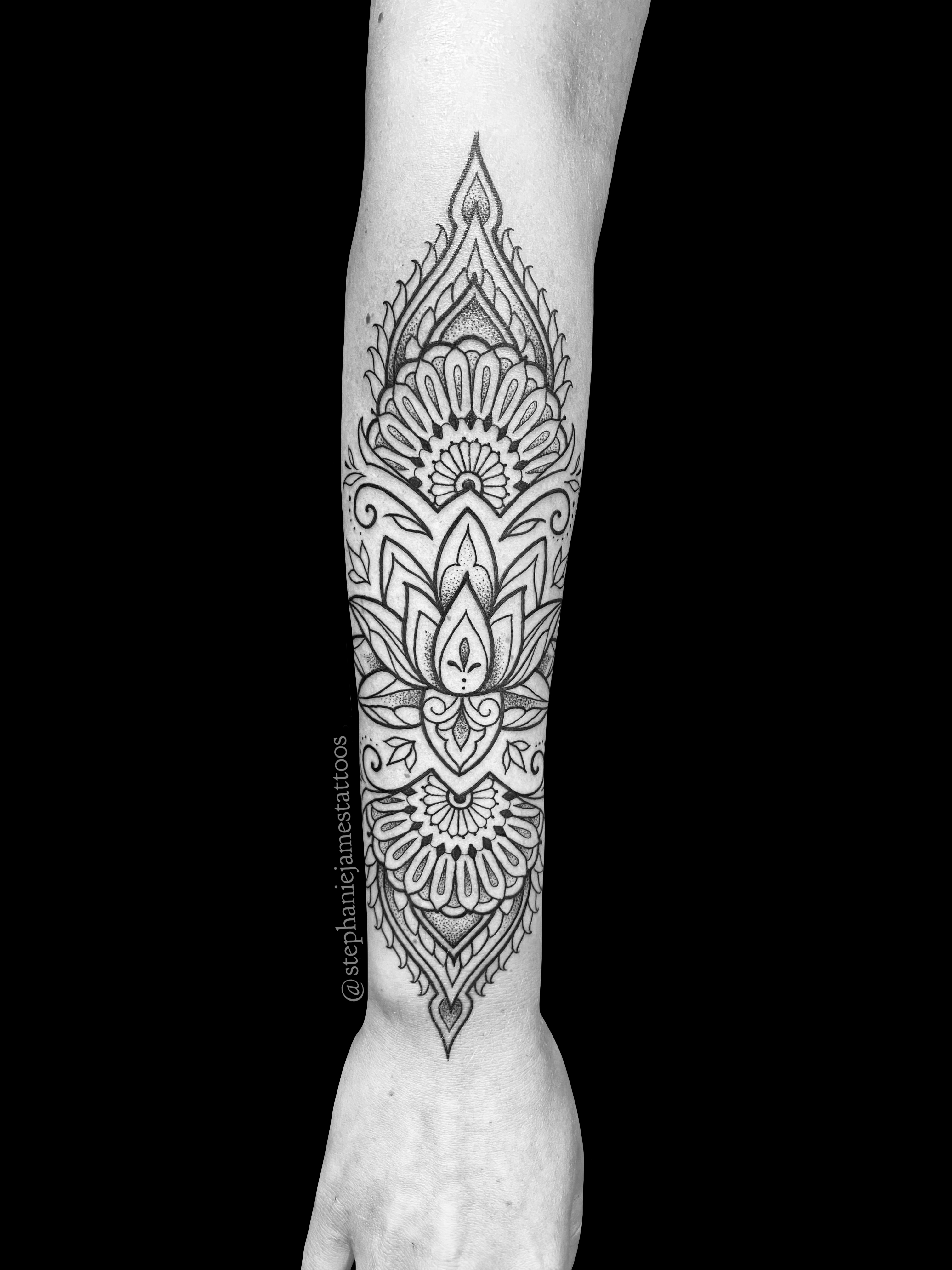 Blackwork, Fine Line, Black and Gray, Geometric, Flower